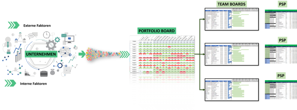 Oft ist es jedoch so, dass in der Basisversion entweder wichtige Funktionen fehlen die Tools bilden keine Brücke zwischen Portfolio Management und Projektmanagement. Daher bauen Verantwortliche Mitarbeiter hybride Werkzeuge, die an den Bedürfnissen des jeweiligen Unternehmens passen. Auch das Reporting gestaltet sich manchmal sehr schwierig und dann greifen Mitarbeiter auf vertraute Werkzeuge wie Excel zurück, um alles abbilden zu können.